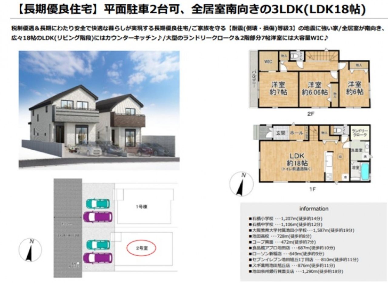ハートフルタウン池田市 旭丘2丁目 新築一戸建て2棟1号棟 [物件ID] 000377000