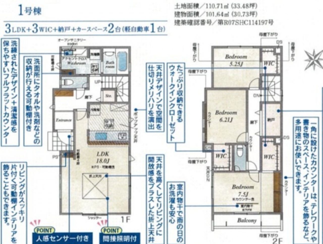 | 建物面積 | 101.64m2 | 土地面積 | 110.71m2 |