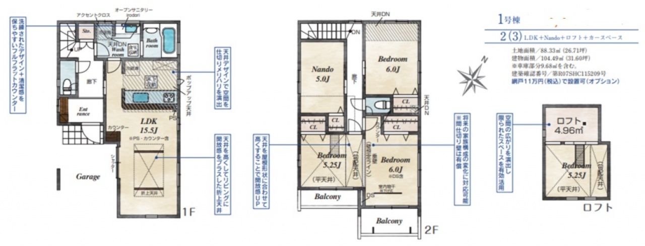 | 建物面積 | 104.49m2 | 土地面積 | 88.33m2 |