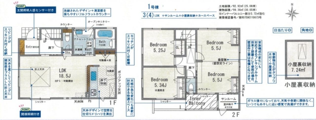 | 建物面積 | 99.36m2 | 土地面積 | 82.92m2 |
