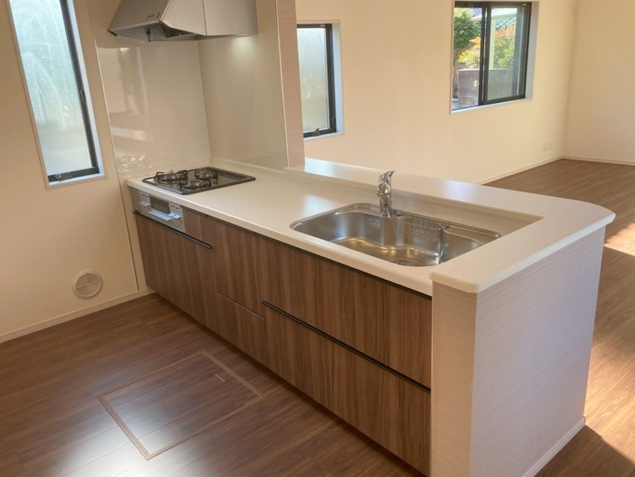 ■フローリングは、キズの付きにくい特殊塗装を採用し、内装ドアは、堂々とした木目が存在感の有る空間。