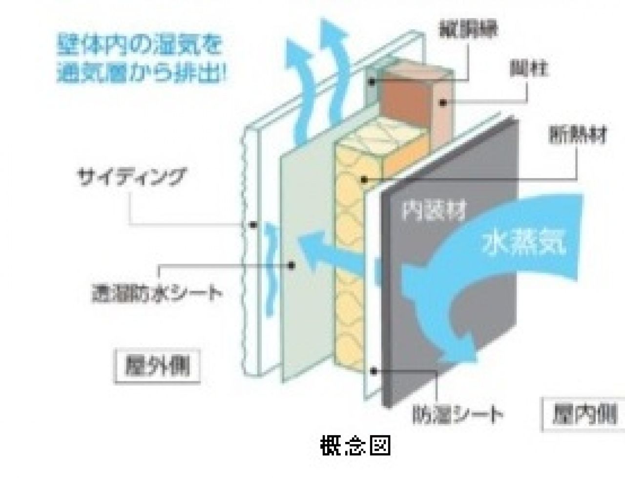 これにより、壁体内の湿気を効率よく外気に放出でき、内部結露を抑 制して、耐久性を向上させることができます。