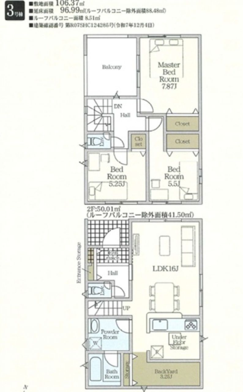 | 建物面積 | 96.99m2 | 土地面積 | 106.37m2 |