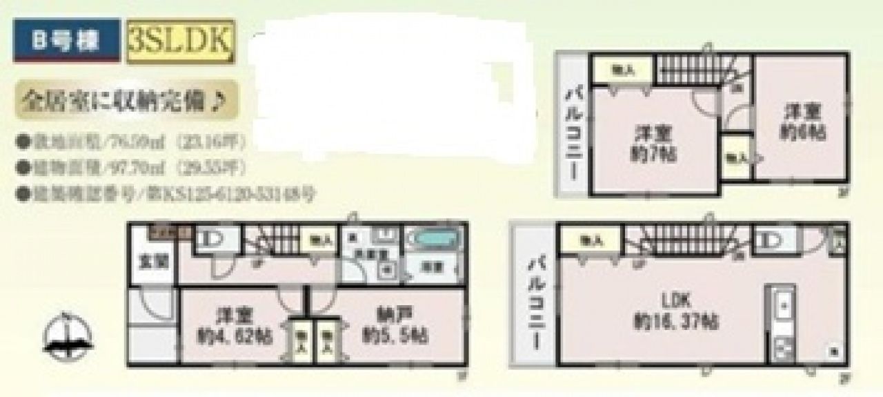 | 建物面積 | 97.7m2 | 土地面積 | 76.59m2 |