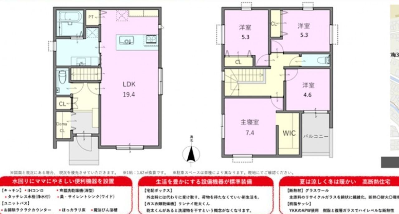 ◎耐震等級は最高等級!耐震等級3の地震に強い家 ◎住宅性能評価取得の高品質住宅! ◎建売では珍しい長期優良住宅! ◆長期優良住宅の最高基準をクリア! ◆数百年に一度の地震に耐える力の1.5倍の耐震等級3 ◆安心の新築住宅10年保証!長期優良住宅で長期間安心して暮らせます! ★2区画分譲地です。 ★フラット35S利用可 ★ペアガラス標準装備 ★浴室暖房乾燥機付 ★駐車スペース2台 ★南側道路 ※全ての現場で地盤調査を実施しております。 (スウェーデン式サウンディング調査) 【ユニットバス】 ほっカラリ床・魔法瓶浴槽 【宅配ボックス】 外出時には代わりに受け取り、荷物を待つ必要がありません。 【ガス衣類乾燥機】 乾太くんがあると洗濯物を干すという概念がなくなるほど重宝します。 【樹脂サッシ】 YKKのAPW使用 樹脂と複層ガラスでハイレベルな断熱性 |