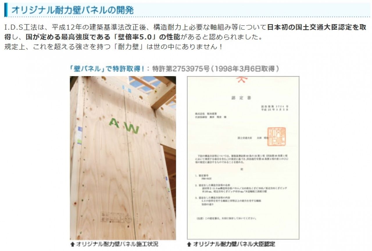 ※オリジナル耐力壁パネルは、壁倍率は5.0倍、3.7倍と認定されており、壁倍率5.0倍は国土交通省が定める数値内の最高値です。