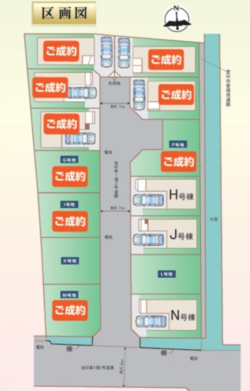 一方 方向:西 種別:公道 幅員:4.7m 間口:5.8m |