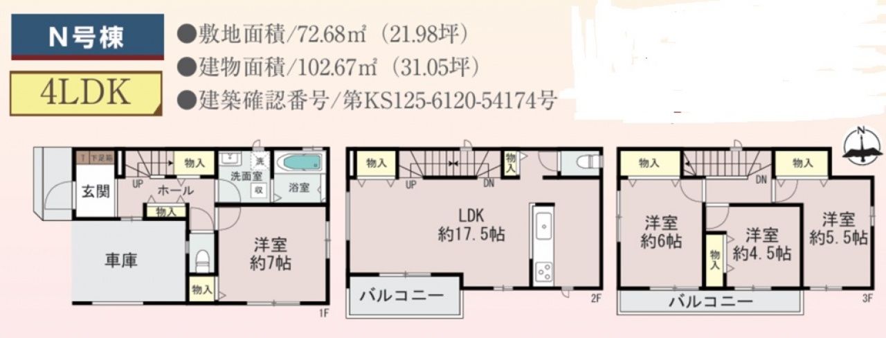 | 建物面積 | 102.67m2 | 土地面積 | 72.68m2 |